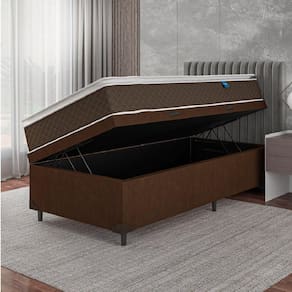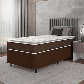 MODELO: Cama Box Baú Solteiro Martino MARCA: Umaflex COR: Marrom/Branco REVESTIMENTO TECIDO SUPERIOR COLCHÃO: Tecido Malha REVESTIMENTO TECIDO LATERAL COLCHÃO: Lateral bordada, tecido poliéster, tecido 100% sintético. Por ser sintético não é propenso ao acúmulo de poeira e materiais orgânicos, além de ser de fácil higienização. REVESTIMENTO INTERIOR COLCHÃO: Molas ensacadas aliada com espuma de qualidade e poliestireno expandido que faz com que o colchão suporte até 120kg por pessoa PILLOW/EURO: Pillow Top TECIDO BOX: Suede veludo PÉS: 6 ALTURA DOS PÉS: 6 cm PESO SUPORTADO: 120kg por pessoa PESO: 53,3kg ITENS INCLUSOS: 1 Colchão de 0,88m e 1 box baú de 0,88m INSTRUÇÕES / CUIDADOS: Utilizar em local seco com passagem de ar, não dobrar, fazer giro quinzenalmente no sentido pés/cabeceira. GARANTIA COLCHÃO: 12 Meses pelo Fabricante GARANTIA BOX: 3 meses pelo fabricante