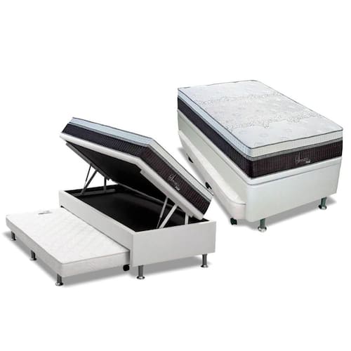 Cama Baú Vaz Exclusivo p/ uso c/ Cama Aux Solteiro Courano White (88x188x31) - Ortobom