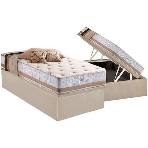 Cama Box Baú Solteiro: Colchão Molas Herval Maxspring Spain + Base Crc Suede Clean(88x188)