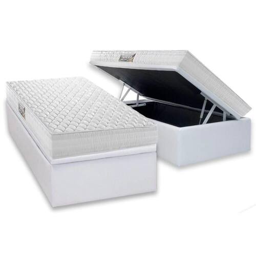 Cama Box Baú Solteiro: Colchão Ortopédico Herval Ag65 Frontier + Base Crc Linhão White (88x188)