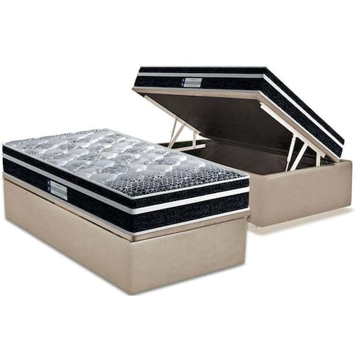 Cama Box Baú Solteiro: Colchão Anatômico Probel D33 / ProDormir Advanced Tech1500 Plus + Base CRC Suede Clean(88x188)