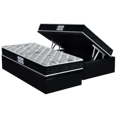Cama Box Baú Solteiro: Colchão Anatômico Probel D45 / Firmepedic ProDormir Advanced Tech2000 + Base CRC Suede Black(88x188)
