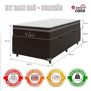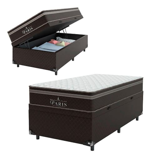Cama Box Baú Solteiro + Colchão Paris Molas Ensacadas - e-Shop Casa