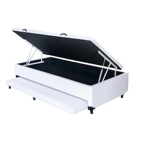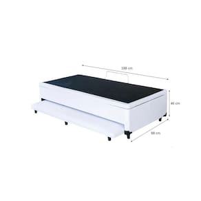 Por que a Base com Baú e Cama Auxiliar?A Base possui um sistema de amortecimento pneumático que evita o esforço na hora de abri-lo. Também possui puxadores que auxiliam na abertura do baú.. Ela ainda conta com cama auxiliar para acomodar as visitas e um baú para você guardar cobertores, edredons, roupas de cama ou o que você desejar. Estrutura de madeira tratada e totalmente reforçada, Anti Mofo, Anti Bactérias, Anti Alérgico. CARACTERÍSTICAS:- Cor: Branco;-Material externo: Tecido sintético;- Suporta até 100kg por pessoa;- Dimensões: Altura: 46cm, Largura: 88 cm, Profundidade 188 cm. - Cama Auxiliar: Ortopédica, espuma de 5cm D20;-Cama superior não acompanha colchão.**Não nos responsabilizamos pela montagem/instalação dos produtos.**Para melhor durabilidade e conservação do produto, evite altos impactos.**Mensalmente escove e aspire seu conjugado, mantendo-o sempre limpo.**Não utilize ferro de passar roupas, secador de cabelos e outra fonte de calor ou vapor sobre o tecido.ortante:-As imagens ambientadas são meramente ilustrativas e podem apresentar itens que não compõe o produto;- As cores do produto podem variar de acordo com o monitor, a iluminação do ambiente ou sua percepção visual;- Montagens, desmontagens e instalações são responsabilidades do cliente. Estes serviços não estão inclusos no valor do produto. Para evitar imprevistos na sua entrega, confira as dimensões do produto no momento da compra e certifique-se de que ele passará por elevadores, portas, escadas e corredores.