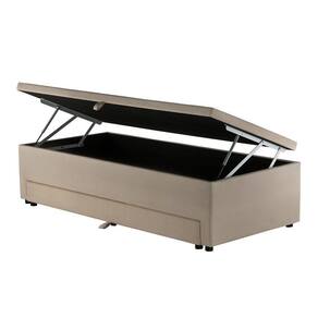 Modelo de colchão: Solteiro Para colchão de: 88 x 188 cm Matéria-prima: Madeira de Eucalipto e MDF Revestimento:: Espuma 100 poliuretano revestida com tecido 100 poliéster Tampo: Tecido Antiderrapante Levantamento do tampo: Suspenção Pneumática Cama auxiliar: Espuma D26 Respiros laterais: Sim Peso Suportado: Até 120 kg Pés: Plásticos Altura dos pés: 7 cm Sistema de montagem: É necessário fixar os pés e os pistões