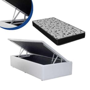 Cama Box Baú Solteiro Conforto Sintético Branco + Colchão Solteiro Conforto Espuma D33 Com EPS 30x88x188