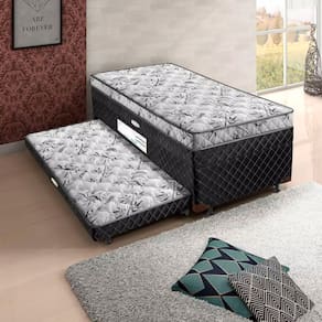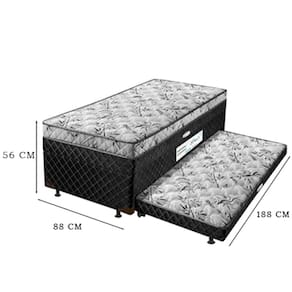 Cama Box Conjugado Solteiro de Molas com Cama Auxiliar e com Baú , é referência em praticidade além de possuir um bonito design e um acabamento diferenciado. São três produtos em um, sua grande vantagem é que você pode guardar a cama auxiliar dentro da Bibox quando você não a tiver utilizando e ocupar o espaço de apenas um produto, além de poder utilizar o amplo espaço do Baú para organizar seus pertences.Um produto 3 em 1, assim é a Bibox . Um colchão confortável em espuma. Contam com tratamento antiácaro e antifungo. e suportam até 80 Kg por pessoa. O baú é ideal para armazenar cobertores, roupas de cama e o que você preferir. Para hospedar a família e amigos com conforto, conta com cama auxiliar em espuma, que é facilmente guardada no box para otimização de espaço em sua casa, sendo perfeita para cômodos compactos. Bibox de molas, pés em PVC branco com 6cm de altura. Tampo e lateral em Poliéster bordado. Características: Densidade: D33;Altura c/ os pés: 56 cm (6cm dos pés);Largura: 88 cm;Profundidade: 188 cm;Cor Predominante: Preto;Garantia do fornecedor: 3 meses;Nível de Conforto: Intermediário;Materiais Internos: Madeira, Espuma e Mola;Materiais Externos: Matelassê; Importante:-As imagens ambientadas são meramente ilustrativas e podem apresentar itens que não compõe o produto.- As cores do produto podem variar de acordo com o monitor, a iluminação do ambiente ou sua percepção visual.- Verifique se o local de entrega está apto a receber o produto com as dimensões informadas.- Não nos responsabilizamos em subir pelas escadas ou içar o produto.- Não nos responsabilizamos pela montagem ou instalação do produto.- Montagens, desmontagens e instalações são responsabilidades do cliente. Estes serviços não estão inclusos no valor do produto. Para evitar imprevistos na sua entrega, confira as dimensões do produto no momento da compra e certifique-se de que ele passará por elevadores, portas, escadas e corredores.