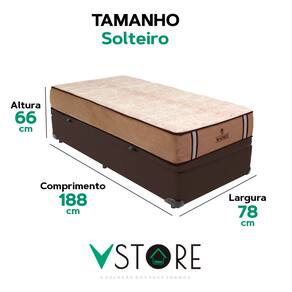 A tecnologia que a sua casa merece está na V-Store! O Conjunto Colchão Madrid + Base Box Baú Bravus da V-Store oferece o equilíbrio perfeito entre conforto, praticidade e elegância. O colchão, com molas ensacadas e sistema EPS, garante noites de sono tranquilas, com suporte ideal e proteção contra ácaros e alergias. Já a base box baú, feita com madeira reflorestada, conta com um design sofisticado, amplo espaço de armazenamento e funcionalidade adicional para guardar travesseiros, malas e cobertores. Com capacidade para até 150 kg por pessoa, esse conjunto é ideal para quem busca qualidade e praticidade.Característica Do Colchão: Modelo: MadridMarca: V-StoreTamanho: SolteiroDimensões: 88x28x188 (Largura x Altura x Comprimento)Conforto: MédioSistema: Molas EnsacadasPillow: Não se aplicaPeso Máximo recomendado: 150 kg (Por pessoa)Proteções: Antiácaro, antialérgico, antifungo, antimofoGarantia: 12 Meses (Espuma) / 10 anos ( Conjunto de Molas Ensacadas)Característica Da Base: Marca: V-StoreModelo: BravusTamanho: SolteiroDimensões: 88x44x188 (Largura x Altura x Comprimento)Estrutura: MadeiraPeso máximo recomendado: 150 kg (Por Pessoa)Altura do Box: 38 cmAltura dos Pés: 6 cmAltura total: 44 cmGarantia: 12 Meses (Estrutura) / 3 meses (Tecido)Selo Ecologicamente CorretoAtenção:- Antes de finalizar sua compra, recomendamos que verifique se as dimensões do produto são adequadas para serem transportadas pelos elevadores, portas, escadas e corredores de sua residência. Ressaltamos que não nos responsabilizamos pelo transporte do produto por meios específicos, como escadas, guinchos ou içamentos.- É possível que hajam leves variações de cor de acordo com o dispositivo que está sendo utilizado como smartphones, computadores, monitores e outros.