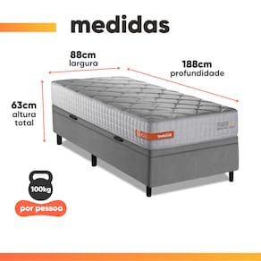 ITENS INCLUSOS: 1 Colchão Solteiro (88cm), 1 Box Baú (88cm)