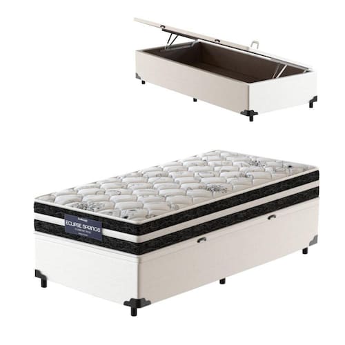 O conforto e a praticidade na hora do sono é o que desejamos, né? O conjunto Eclipse além de proporcionar o descanso merecido, praticidade do dia a dia, lhe entregará o espaço extra necessário para organização do ambiente. Mais do que uma experiência, o colchão Eclipse é sinônimo de bem-estar. Desenvolvido com tecnologias avançadas, O Colchão Eclipse da Probel é produzido em molas ensacadas com espuma D28 de alta qualidade, com proteção Antialérgica, Antifungo, Antimofo e um acabamento perfeito em Jacquard. Seu conforto intermediário suporta até 110Kg por pessoa. A base baú é confeccionada com madeira de reflorestamento, possuindo tratamentos anticupim e antimofo, com acabamento em material Sintético de alta qualidade. O seu diferencial é seu compartimento interno garantindo um novo espaço em seu quarto agregando valor e sofisticação ao ambiente.