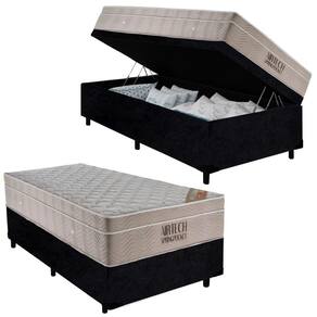 Cama Box Baú Solteiro Preto Colchão Molas Ensacadas Airtech Spring 88x188 - Ortobom