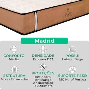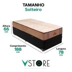A tecnologia que a sua casa merece está na V-Store! O Conjunto Colchão Madrid + Base Box Baú Bravus da V-Store oferece o equilíbrio perfeito entre conforto, praticidade e elegância. O colchão, com molas ensacadas e sistema EPS, garante noites de sono tranquilas, com suporte ideal e proteção contra ácaros e alergias. Já a base box baú, feita com madeira reflorestada, conta com um design sofisticado, amplo espaço de armazenamento e funcionalidade adicional para guardar travesseiros, malas e cobertores. Com capacidade para até 150 kg por pessoa, esse conjunto é ideal para quem busca qualidade e praticidade.Característica Do Colchão: Modelo: MadridMarca: V-StoreTamanho: SolteiroDimensões: 88x28x188 (Largura x Altura x Comprimento)Conforto: MédioSistema: Molas EnsacadasPillow: Não se aplicaPeso Máximo recomendado: 150 kg (Por pessoa)Proteções: Antiácaro, antialérgico, antifungo, antimofoGarantia: 12 Meses (Espuma) / 10 anos ( Conjunto de Molas Ensacadas)Característica Da Base: Marca: V-StoreModelo: BravusCor do Box: PretoTamanho: SolteiroDimensões: 88x44x188 (Largura x Altura x Comprimento)Estrutura: MadeiraPeso máximo recomendado: 150 kg (Por Pessoa)Altura do Box: 38 cmAltura dos Pés: 6 cmAltura total: 44 cmGarantia: 12 Meses (Estrutura) / 3 meses (Tecido)Selo Ecologicamente CorretoAtenção:- Antes de finalizar sua compra, recomendamos que verifique se as dimensões do produto são adequadas para serem transportadas pelos elevadores, portas, escadas e corredores de sua residência. Ressaltamos que não nos responsabilizamos pelo transporte do produto por meios específicos, como escadas, guinchos ou içamentos.- É possível que hajam leves variações de cor de acordo com o dispositivo que está sendo utilizado como smartphones, computadores, monitores e outros.