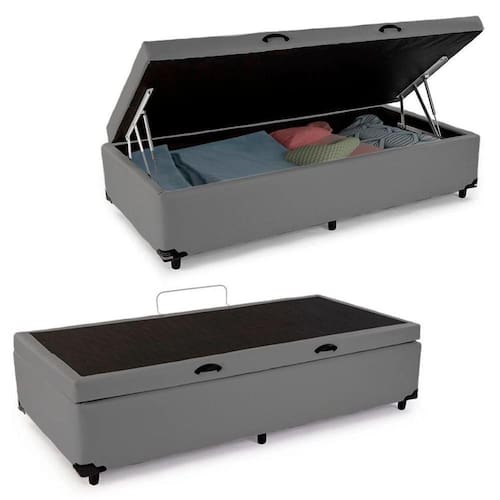 Cama Box Baú Solteiro Sintético SerenePrime Cinza 88x188x44