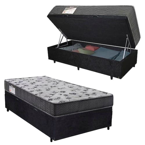 Cama Box Baú Solteiro Suede + Colchão De Espuma D33 - Sereneprime - 88cm preto