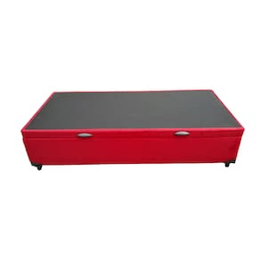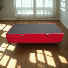Cama Box Baú Solteiro O Box Baú Solteiro tem um sistema de fácil abertura por pistões a Gás . Proporciona para o seu quarto melhor aproveitamento de espaço, pois seu amplo baú interno é ideal para guardar objetos, roupas de cama, travesseiros, edredons, etc. Características: – Estrutura Externa: Suede– Cor Predominante: Vermelho– Material da estrutura: Madeira– Lateral da estrutura: Vazada– Altura do baú: 38 cm– Altura total do baú com pés: 44 cm– Largura: 88 cm– Comprimento: 188 cm– Profundidade Interna: 27 cm– Peso: 34 Kg– Altura dos Pés: 6 cm– Pistão a Gás: Sim, na cor preta– Tratamento Antiácaro: Sim– Tratamento Antialérgico: Sim– Suporta até (kg): 150 Kg– Garantia do Fornecedor: 03 meses– Necessita Montagem: Não– Acompanha colchão: Não– Acessórios: 2 puxadores e 1 arco na parte de trás para o colchão não escorregar Importante: – Verifique se o local de entrega está apto a receber o produto com as dimensões informadas.– Não nos responsabilizamos pelo transporte dos produtos por escadas, guinchos, içamentos etc. Foto meramente ilustrativa.As cores podem variar de acordo com as luzes e tela do computador, celular etc.