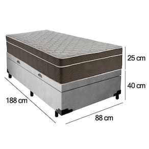 Cama Box Baú Suede Solteiro + Colchão Serene Molas Ensacadas 88x188x69 Cinza
