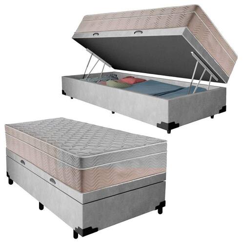 Cama Box Baú Suede Solteiro + Colchão Sereneprime Molas Ensacadas 88x188x69 Cor:cinza
