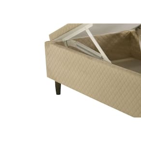 Características Gerais da Cama Box - Não acompanha Cantoneira - Molas de Articulação Características Internas Cama Box - Estrutura de Madeira Forração Revestimento da Cama Box - Antiderrapante Sobre os Pés para Cama Box - Pés foto ilustrativa - Pés Fixos ABS/PVC Altura da Cama Box com os pés - 46 cm altura