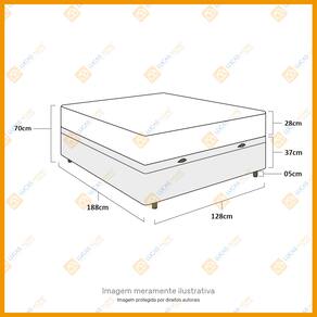 Especificações Técnicas Baú: - Marca: Lucas Home; - Material: Madeira tratada; - Peso máximo recomendado: até 150 Kg (por pessoa); - Altura do baú: 37cm; - Profundidade do baú: 27cm; - Altura dos pés: 5cm; - Revestimento da Cama: Material Sintético; - Garantia: 6 meses de garantia; - Dimensões do produto (largura x comprimento x altura) Viúva:128x188x42cm.