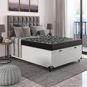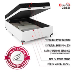 Cama Box Baú Viúva + Colchão D20 - e-Shop Casa - Couro Branco
