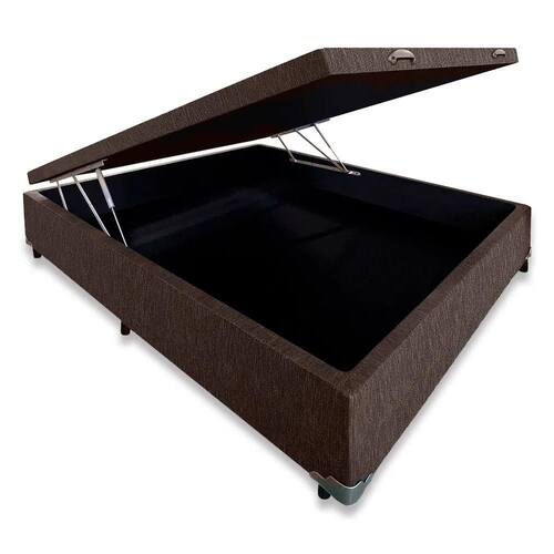 Produto ideal para economizar espaço e aproveitar o espaço interno. Perfeito para guardar roupas de cama, travesseiros, etc. Feito com estrutura de Eucaliptos. Baú com profundidade de 21 cm, altura do Box de 25 cm e pés de 6,5 cm. Possui abertura com pistão a gás. Suporta até 240kg de peso total, incluindo o colchão.