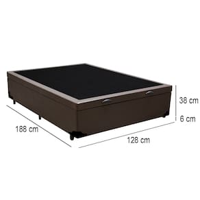 Especificações Técnicas Base Box: Cor: Marrom Material: Estrutura blindada em madeira 100% de Reflorestamento Proteções: Antialérgico - Antiácaro Peso máximo Recomendado: até 150kg Revestimento: Material (tecido) Sintético Altura da base: 38cm Altura dos pés: 6cm