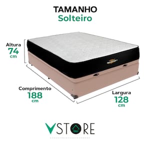 A tecnologia que a sua casa merece está na V-Store! O Conjunto Colchão Orthopedic + Base Box Baú Bravus da V-Store une conforto e funcionalidade. O colchão, com espuma D33 e suporte extra firme, oferece alinhamento ideal e proteção contra ácaros, alergias e fungos. A base box baú, com estrutura resistente e espaço interno, combina organização e estilo, otimizando seu dormitório com praticidade e elegância.Característica Do Colchão: Modelo: OrthopedicMarca: V-StoreTamanho: ViúvoDimensões: 128x30x188 (Largura x Altura x Comprimento)Conforto: Extra FirmeSistema: EspumaPillow: Não se aplicaPeso Máximo recomendado: 110 kg (Por pessoa)Proteções: Antiácaro, antialérgico, antifungo, antimofoGarantia: 12 Meses (Espuma)Característica Da Base: Marca: V-StoreModelo: BravusCor do Box: BegeTamanho: ViúvoDimensões: 128x44x188 (Largura x Altura x Comprimento)Estrutura: MadeiraPeso máximo recomendado: 150 kg (Por Pessoa)Altura do Box: 38 cmAltura dos Pés: 6 cmAltura total: 44 cmGarantia: 12 Meses (Estrutura) / 3 meses (Tecido)Selo Ecologicamente CorretoAtenção:- Antes de finalizar sua compra, recomendamos que verifique se as dimensões do produto são adequadas para serem transportadas pelos elevadores, portas, escadas e corredores de sua residência. Ressaltamos que não nos responsabilizamos pelo transporte do produto por meios específicos, como escadas, guinchos ou içamentos.- É possível que hajam leves variações de cor de acordo com o dispositivo que está sendo utilizado como smartphones, computadores, monitores e outros.
