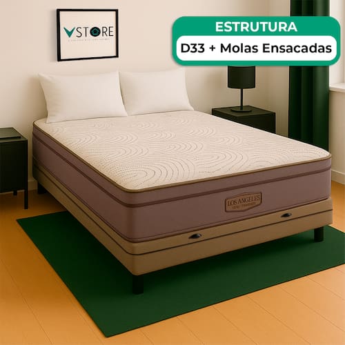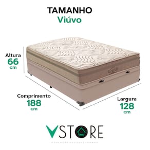 A tecnologia que a sua casa merece está na V-Store! O Conjunto Colchão Los Angeles + Base Box Baú Bravus da V-Store oferece conforto e funcionalidade. O colchão, com molas ensacadas e sistema EPS, garante suporte ideal, conforto térmico e proteção antiácaro. A base box, com amplo espaço de armazenamento, é feita de madeira reflorestada e revestida com tecido resistente, proporcionando praticidade e sofisticação ao seu quarto.Característica Do Colchão: Modelo: Los AngelesMarca: V-StoreTamanho: ViúvoDimensões: 128x28x188 (Largura x Altura x Comprimento)Conforto: MédioSistema: Molas EnsacadasPillow: Não se aplicaPeso Máximo recomendado: 150 kg (Por pessoa)Proteções: Antiácaro, antialérgico, antifungo, antimofoGarantia: 12 Meses (Espuma) / 10 anos ( Conjunto de Molas Ensacadas)Característica Da Base: Marca: V-StoreModelo: BravusTamanho: ViúvoDimensões: 128x44x188 (Largura x Altura x Comprimento)Estrutura: MadeiraPeso máximo recomendado: 150 kg (Por Pessoa)Altura do Box: 38 cmAltura dos Pés: 6 cmAltura total: 44 cmGarantia: 12 Meses (Estrutura) / 3 meses (Tecido)Selo Ecologicamente CorretoAtenção:- Antes de finalizar sua compra, recomendamos que verifique se as dimensões do produto são adequadas para serem transportadas pelos elevadores, portas, escadas e corredores de sua residência. Ressaltamos que não nos responsabilizamos pelo transporte do produto por meios específicos, como escadas, guinchos ou içamentos.- É possível que hajam leves variações de cor de acordo com o dispositivo que está sendo utilizado como smartphones, computadores, monitores e outros.