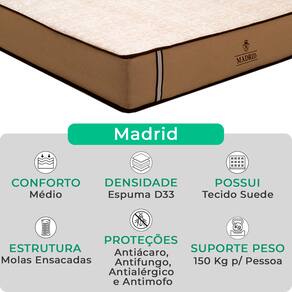Material do produto Madeira Reflorestada (Base), Molas Ensacadas e Espumetrosa (Colchão)