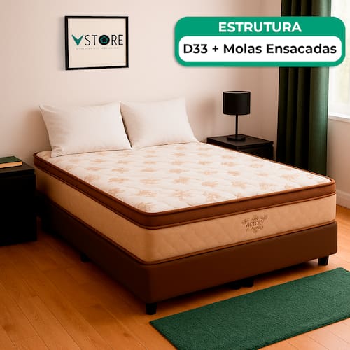 A tecnologia que a sua casa merece está na V-Store! O Conjunto Colchão Four Seasons e Base Box Baú Bravus é a solução ideal para quem busca conforto, durabilidade e praticidade. O colchão, com molas ensacadas, pillow top e tecnologia EPS, oferece suporte independente e conforto térmico, enquanto o revestimento em malha 100% algodão e tratamentos antiácaro e antialérgico garantem mais saúde e bem-estar. A Base Box Baú Bravus, feita com madeira reflorestada e revestida com tecido sintético, combina resistência, elegância e funcionalidade, oferecendo um excelente espaço de armazenamento e otimizando o seu quarto.Característica Do Colchão: Modelo: Four SeasonMarca: V-StoreTamanho: ViúvoDimensões: 128x30x188 (Largura x Altura x Comprimento)Conforto: MédioSistema: Molas EnsacadasPillow: Pillow TopPeso Máximo recomendado: 150 kg (Por pessoa)Proteções: Antiácaro, antialérgico, antifungo, antimofoGarantia: 12 Meses (Espuma) / 10 anos ( Conjunto de Molas Ensacadas)Característica Da Base: Marca: V-StoreModelo: BravusCor do Box: MarromTamanho: ViúvoDimensões: 128x44x188 (Largura x Altura x Comprimento)Estrutura: MadeiraPeso máximo recomendado: 150 kg (Por Pessoa)Altura do Box: 38 cmAltura dos Pés: 6 cmAltura total: 44 cmGarantia: 12 Meses (Estrutura) / 3 meses (Tecido)Selo Ecologicamente CorretoAtenção:- Antes de finalizar sua compra, recomendamos que verifique se as dimensões do produto são adequadas para serem transportadas pelos elevadores, portas, escadas e corredores de sua residência. Ressaltamos que não nos responsabilizamos pelo transporte do produto por meios específicos, como escadas, guinchos ou içamentos.- É possível que hajam leves variações de cor de acordo com o dispositivo que está sendo utilizado como smartphones, computadores, monitores e outros.