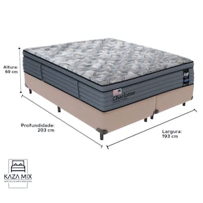 Bem-vindo(a) ao nosso catálogo! Apresentamos a você uma descrição completa sobre esse produto: A marca SealyEntre as personalidades que usam e usaram os colchões da marca Sealy estão a cantora Adele, Rainha Elizabeth II, a apresentadora Ellen DeGeneres e o jogador de basquete LeBron James. Atendendo também os hotéis da Disney, Copacabana Palace, Hard Rock Hotels e outros. Referência na fabricação de colchões de alta qualidade, a empresa foi fundada em 1881. Investindo em tecnologia de ponta e materiais premium para produzir produtos duráveis e confortáveis, é reconhecida por diversos consumidores famosos em todo o mundo. Modelo: CharlotteNível de Conforto: MacioSuporte de peso: 240 quilos (120kg por pessoa)Molas: Molas Ensacadas IndividualmentePillow: Pillow CloudEspuma: D33 e D28Altura: 34cmTecido: Tampo em Malha MarganTransforme suas noites de sono com Colchão Charlotte Sealy de 34cm, onde suavidade e suporte se encontram em perfeita harmonia. Com sua estrutura de Molas Ensacadas, ele se adapta às curvas do seu corpo, proporcionando um conforto macio e um suporte firme exatamente onde você precisa. Suportando até 240 kg, é durável e ideal para diferentes tipos de usuários. A tecnologia Posturepedic garante suporte extra nas áreas de maior pressão, ajudando a manter uma postura correta e promovendo um descanso profundo. As molas ensacadas individualmente trabalham de forma independente, minimizando a transferência de movimento e permitindo um sono tranquilo, mesmo que seu parceiro se mova durante a noite. O colchão é equipado com uma camada Pillow Cloud que intensifica a suavidade, e um tampo em malha Margan que regula a umidade e dissipa o calor, mantendo o colchão sempre fresco e confortável. A lateral em Jacquard Plano adiciona durabilidade e um toque de elegância ao colchão. Com fibras siliconadas e espumas variadas que aliviam a pressão e mantêm o suporte firme, o Colchão Charlotte Sealy é perfeito para uma noite de sono reparadora. Suas bordas firmes evitam o afundamento e ampliam a área útil do colchão, oferecendo mais espaço para relaxar. O Colchão Charlotte Sealy combina tecnologia avançada e um design inteligente, proporcionando uma experiência luxuosa de descanso. Transforme suas noites com um sono revitalizante e adquira o seu hoje mesmo! Além de tudo, esse produto acompanha a Cama Box da Kaza Mix e assim se torna um conjunto perfeito para o seu quarto! Marca: Kaza MixCor do Box: BegeTamanho: KingMaterial dos pés: MadeiraEstrutura: MadeiraPeso máximo recomendado: Até 150kg de cada ladoLargura: 193cmComprimento: 203cmAltura dos pés: 12cmAltura total: 42cmGarantia: 03 mesesSelo Ecologicamente CorretoAtenção: - Antes de finalizar sua compra, recomendamos que verifique se as dimensões do produto são adequadas para serem transportadas pelos elevadores, portas, escadas e corredores de sua residência. Ressaltamos que não nos responsabilizamos pelo transporte do produto por meios específicos, como escadas, guinchos ou içamentos. - É possível que hajam leves variações de cor de acordo com o dispositivo que está sendo utilizado como smartphones, computadores, monitores e outros.