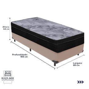 O conforto que sua casa precisa e a qualidade que você merece está na Kazamix!Redefina suas noites de sono com o Colchão Pampa Molas Ensacadas, projetado para oferecer máximo conforto e suporte. Suas molas ensacadas individualmente garantem estabilidade, minimizando vibrações e proporcionando um descanso tranquilo. O Ortopillow com tecido em poliéster de alta resistência e bordado matelassê acrescenta uma camada extra de maciez e conforto. Com tratamento antiácaro, antifungo e tecnologia No Turn, é ideal para quem busca praticidade e um ambiente de sono mais saudável. Este colchão combina qualidade e durabilidade para oferecer uma experiência de descanso incomparável.Modelo: Pampa Marca: OrtobomTamanho: SolteiroDimensões: 88x188X24 (Largura x Comprimento x Altura)Conforto: MacioSistema: Molas ensacadas Pillow: Euro PillowPeso Máximo recomendado: 120 kg (Por pessoa)Proteções: Antiácaro, antialérgico, antifungo, antimofoGarantia: 1 ano pelo FabricanteO conforto que sua casa precisa e a qualidade que você merece está na Kazamix!Eleve o conforto e a sofisticação do seu quarto com a Cama Box!Produzida em madeira de reflorestamento reforçada, a Cama Box combina qualidade, durabilidade e um design elegante, que confere leveza e modernidade ao seu dormitório. Sua estrutura robusta suporta até 150 kg por pessoa, garantindo a sustentação perfeita para o colchão e prolongando a vida útil do produto.Com uma altura ergonômica, ela oferece maior conforto ao deitar e levantar, enquanto o acabamento de alta qualidade se adapta a qualquer estilo de decoração, unindo praticidade e estilo.Não perca tempo! Adquira agora mesmo a sua Cama Box e transforme seu dormitório com conforto e elegância.Marca: KazaMixModelo: BoxCor do Box: BegeTamanho: SolteiroDimensões: 88X188X35 (Largura x Comprimento x Altura) Estrutura: MadeiraPeso máximo recomendado: 150 kg (Por Pessoa)Altura do Box: 25 cm Altura dos Pés: 10 cm Altura total: 35 cm Garantia: 03 mesesSelo Ecologicamente CorretoAtenção: Antes de finalizar sua compra, certifique-se de que as dimensões do produto sejam adequadas para serem transportadas pelos elevadores, portas, escadas e corredores de sua residência. Ressaltamos que não nos responsabilizamos pelo transporte do produto por meios específicos, como escadas, guinchos ou içamentos.
