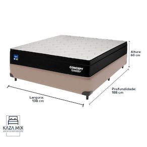A lateral em Kupon e o pillow INN complementam o design, conferindo um visual moderno e elegante. Com 25 cm de altura, suporte para até 110 kg e detalhes de construção que incluem EPS para estabilidade e TNT 100g para maior aderência, o Concept é a escolha ideal para quem valoriza um descanso confortável e refinado.