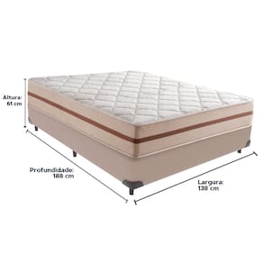 O conforto que sua casa precisa e a qualidade que você merece está na Kazamix!O Colchão Classic da Anjos é a escolha perfeita para quem busca um descanso confortável e duradouro, sem abrir mão de um ótimo custo-benefício. Com sua alta densidade e a tecnologia das molas ensacadas, ele oferece um suporte firme e uma distribuição de peso uniforme, garantindo noites de sono tranquilas e reparadoras. Seu design clean, com uma superfície plana, traz um visual moderno e sofisticado para o ambiente, enquanto o tratamento antiácaro e antialérgico proporciona um ambiente de descanso mais saudável. Ideal para quem deseja conforto, durabilidade e qualidade em um único colchão. Invista no seu bem-estar e transforme suas noites com o colchão Classic da Anjos.Modelo: Classic 26Marca: AnjosTamanho: CasalDimensões: 138x188X26 (Largura x Comprimento x Altura)Conforto: IntermediárioSistema: Molas ensacadas Pillow: Não se AplicaPeso Máximo recomendado: 120 kg (Por pessoa)Proteções: Antiácaro, antialérgico, antifungo, antimofoGarantia: 1 ano pelo FabricanteO conforto que sua casa precisa e a qualidade que você merece está na Kazamix!Eleve o conforto e a sofisticação do seu quarto com a Cama Box!Produzida em madeira de reflorestamento reforçada, a Cama Box combina qualidade, durabilidade e um design elegante, que confere leveza e modernidade ao seu dormitório. Sua estrutura robusta suporta até 150 kg por pessoa, garantindo a sustentação perfeita para o colchão e prolongando a vida útil do produto.Com uma altura ergonômica, ela oferece maior conforto ao deitar e levantar, enquanto o acabamento de alta qualidade se adapta a qualquer estilo de decoração, unindo praticidade e estilo.Não perca tempo! Adquira agora mesmo a sua Cama Box e transforme seu dormitório com conforto e elegância.Marca: KazaMixModelo: BoxCor do Box: BegeTamanho: CasalDimensões: 138X188X35 (Largura x Comprimento x Altura) Estrutura: MadeiraPeso máximo recomendado: 150 kg (Por Pessoa)Altura do Box: 25 cm Altura dos Pés: 10 cm Altura total: 35 cm Garantia: 03 mesesSelo Ecologicamente CorretoAtenção: Antes de finalizar sua compra, certifique-se de que as dimensões do produto sejam adequadas para serem transportadas pelos elevadores, portas, escadas e corredores de sua residência. Ressaltamos que não nos responsabilizamos pelo transporte do produto por meios específicos, como escadas, guinchos ou içamentos.