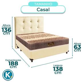 Cama + Box Bege E Colchão D26 Casal - Ortophedic Sankonfort + Cabeceira Conjunto Casal Colchão Ortophedic + Cama Box Colchão Casal com 25cm de altura, proporcionando mais conforto e presença
