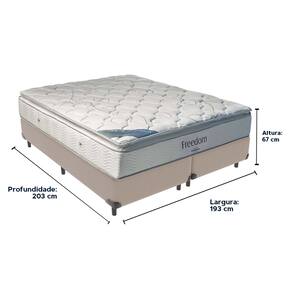 O conforto que sua casa precisa e a qualidade que você merece está na Kazamix!O Colchão Freedom Ortobom oferece o equilíbrio perfeito entre conforto e suporte. Com Molas Ensacadas, ele proporciona suporte individualizado, reduzindo a transferência de movimento, e sua camada de espuma viscoelástica D33 se adapta ao contorno do corpo, melhorando a circulação e proporcionando uma sensação única de aconchego.O Pillow Euro, com uma camada extra de espuma, traz ainda mais conforto e um toque de sofisticação, enquanto o sistema No Turn elimina a necessidade de virar o colchão, facilitando a manutenção.Ideal para quem busca um sono de qualidade e durabilidade, o Colchão Freedom é a escolha perfeita para casais ou quem deseja um colchão de altura imponente e design moderno. Produzido pela Ortobom, uma marca líder em tecnologia do sono, ele garante a qualidade e inovação que você merece. Invista no seu bem-estar e transforme suas noites com o Colchão Freedom Ortobom!Modelo: FreedomMarca: OrtobomTamanho: KingDimensões: 193x203X32 (Largura x Comprimento x Altura)Conforto: MacioSistema: Molas EnsacadasPillow: Euro PillowPeso Máximo recomendado: 150 kg (Por pessoa)Proteções: Antiácaro, antialérgico, antifungo, antimofoGarantia: 1 ano pelo FabricanteO conforto que sua casa precisa e a qualidade que você merece está na Kazamix!Eleve o conforto e a sofisticação do seu quarto com a Cama Box!Produzida em madeira de reflorestamento reforçada, a Cama Box combina qualidade, durabilidade e um design elegante, que confere leveza e modernidade ao seu dormitório. Sua estrutura robusta suporta até 150 kg por pessoa, garantindo a sustentação perfeita para o colchão e prolongando a vida útil do produto.Com uma altura ergonômica, ela oferece maior conforto ao deitar e levantar, enquanto o acabamento de alta qualidade se adapta a qualquer estilo de decoração, unindo praticidade e estilo.Não perca tempo! Adquira agora mesmo a sua Cama Box e transforme seu dormitório com conforto e elegância.Marca: KazaMixModelo: BoxCor do Box: BegeTamanho: KingDimensões: 193X203X35 (Largura x Comprimento x Altura) Estrutura: MadeiraPeso máximo recomendado: 150 kg (Por Pessoa)Altura do Box: 25 cm Altura dos Pés: 5 cm Altura total: 37 cm Garantia: 03 mesesSelo Ecologicamente CorretoAtenção: Antes de finalizar sua compra, certifique-se de que as dimensões do produto sejam adequadas para serem transportadas pelos elevadores, portas, escadas e corredores de sua residência. Ressaltamos que não nos responsabilizamos pelo transporte do produto por meios específicos, como escadas, guinchos ou içamentos.