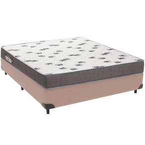 Cama Box Bege e Colchão Light Espuma D33 Casal Ortobom
