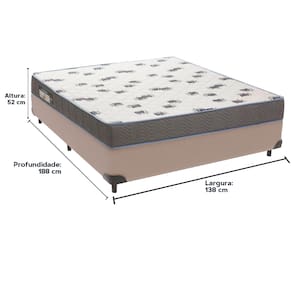O conforto que sua casa precisa e a qualidade que você merece está na Kazamix!Descubra o Colchão Ortobom Light D33, perfeito para quem busca resistência e conforto. Com sua espuma D33 Pró Aditivada de Alta Performance, ele oferece sustentação firme e durabilidade superior, ideal para noites de sono tranquilas e revigorantes. O tampo com bordado em Matelassê proporciona um toque extra de conforto, enquanto o revestimento em Viscopoli garante suavidade e elegância.Além disso, este modelo conta com tratamento antiácaro e antialérgico, promovendo um ambiente de descanso mais saudável e livre de impurezas. Fabricado com a qualidade reconhecida da Ortobom, o Light D33 é a escolha ideal para quem valoriza bem-estar e durabilidade. Transforme suas noites com o conforto que você merece!Modelo: LightMarca: OrtobomTamanho: CasalDimensões: 138x188X18 (Largura x Comprimento x Altura)Conforto: FirmeSistema: Espuma D33Pillow: Não se AplicaPeso Máximo recomendado: 100 kg (Por pessoa)Proteções: Antiácaro, antialérgico, antifungo, antimofoGarantia: 1 ano pelo FabricanteO conforto que sua casa precisa e a qualidade que você merece está na Kazamix!Eleve o conforto e a sofisticação do seu quarto com a Cama Box!Produzida em madeira de reflorestamento reforçada, a Cama Box combina qualidade, durabilidade e um design elegante, que confere leveza e modernidade ao seu dormitório. Sua estrutura robusta suporta até 150 kg por pessoa, garantindo a sustentação perfeita para o colchão e prolongando a vida útil do produto.Com uma altura ergonômica, ela oferece maior conforto ao deitar e levantar, enquanto o acabamento de alta qualidade se adapta a qualquer estilo de decoração, unindo praticidade e estilo.Não perca tempo! Adquira agora mesmo a sua Cama Box e transforme seu dormitório com conforto e elegância.Marca: KazaMixModelo: BoxCor do Box: BegeTamanho: CasalDimensões: 138X188X35 (Largura x Comprimento x Altura) Estrutura: MadeiraPeso máximo recomendado: 150 kg (Por Pessoa)Altura do Box: 25 cm Altura dos Pés: 10 cm Altura total: 35 cm Garantia: 03 mesesSelo Ecologicamente CorretoAtenção: Antes de finalizar sua compra, certifique-se de que as dimensões do produto sejam adequadas para serem transportadas pelos elevadores, portas, escadas e corredores de sua residência. Ressaltamos que não nos responsabilizamos pelo transporte do produto por meios específicos, como escadas, guinchos ou içamentos.
