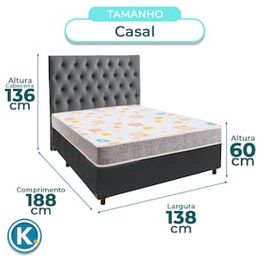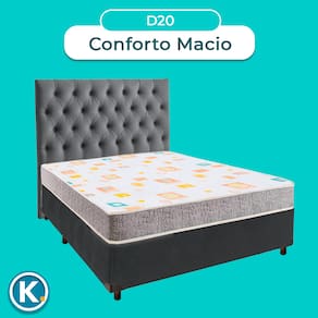 Cama + Box Blindado e Colchão D20 Casal - D20 Inducol + Cabeceira - Cinza
