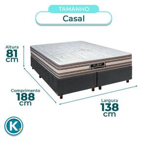 Modelo: Elite BiPartido Marca: Nature Tamanho: Casal Tecido: Veludo Largura: 138cm Comprimento: 188cm Altura: 35cm Altura dos Pés: 13cm Material dos Pés: Madeira Suporte de Peso: 150Kg Peso: 27Kg Garantia: 3 Meses