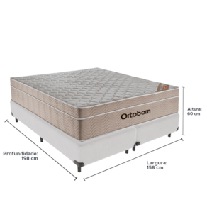 O conforto que sua casa precisa e a qualidade que você merece está na Kazamix!Durma com a Qualidade e Conforto que Você Merece!O Colchão Airtech Molas ensacadas Ortobom é a escolha perfeita para quem busca conforto e suporte. Equipado com um sistema de molas ensacadas, ele oferece suporte individualizado, garantindo o alinhamento correto da coluna e reduzindo os impactos dos movimentos durante o sono. O Euro Pillow proporciona uma camada extra de maciez, garantindo um sono ainda mais revigorante.Seu revestimento em tecido de malha e matelassê, junto com a lateral em suede, proporcionam um visual sofisticado, elevando ainda mais a estética do seu dormitório e agregando elegância ao ambiente.Além disso, o colchão conta com proteção antiácaro e antialérgico, criando um ambiente de sono mais saudável e ideal para quem busca bem-estar. Produzido com materiais de alta qualidade e a confiabilidade da Ortobom, líder em tecnologia e durabilidade, ele é feito para durar, oferecendo anos de conforto e suporte.Modelo: Airtech Molas ensacadasMarca: OrtobomTamanho: QueenDimensões: 158x198X25 (Largura x Comprimento x Altura)Conforto: MacioSistema: Molas EnsacadasPillow: Euro PillowPeso Máximo recomendado: 120 kg (Por pessoa)Proteções: Antiácaro, antialérgico, antifungo, antimofoGarantia: 1 ano pelo FabricanteO conforto que sua casa precisa e a qualidade que você merece está na Kazamix!Eleve o conforto e a sofisticação do seu quarto com a Cama Box!Produzida em madeira de reflorestamento reforçada, a Cama Box combina qualidade, durabilidade e um design elegante, que confere leveza e modernidade ao seu dormitório. Sua estrutura robusta suporta até 150 kg por pessoa, garantindo a sustentação perfeita para o colchão e prolongando a vida útil do produto.Com uma altura ergonômica, ela oferece maior conforto ao deitar e levantar, enquanto o acabamento de alta qualidade se adapta a qualquer estilo de decoração, unindo praticidade e estilo.Não perca tempo! Adquira agora mesmo a sua Cama Box e transforme seu dormitório com conforto e elegância.Marca: KazaMixModelo: BoxCor do Box: BrancoTamanho: QueenDimensões: 158X198X35 (Largura x Comprimento x Altura) Estrutura: MadeiraPeso máximo recomendado: 150 kg (Por Pessoa)Altura do Box: 25 cm Altura dos Pés: 10 cm Altura total: 35 cm Garantia: 03 mesesSelo Ecologicamente CorretoAtenção: Antes de finalizar sua compra, certifique-se de que as dimensões do produto sejam adequadas para serem transportadas pelos elevadores, portas, escadas e corredores de sua residência. Ressaltamos que não nos responsabilizamos pelo transporte do produto por meios específicos, como escadas, guinchos ou içamentos.
