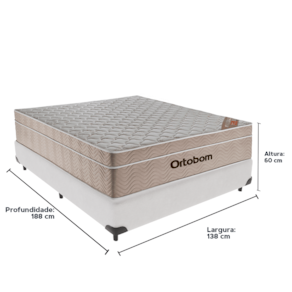 O conforto que sua casa precisa e a qualidade que você merece está na Kazamix!Durma com a Qualidade e Conforto que Você Merece!O Colchão Airtech SpringMolas Ensacadas Ortobom é a escolha perfeita para quem busca conforto e suporte. Equipado com um sistema de molas ensacadas, ele oferece suporte individualizado, garantindo o alinhamento correto da coluna e reduzindo os impactos dos movimentos durante o sono. O Euro Pillow proporciona uma camada extra de maciez, garantindo um sono ainda mais revigorante.Seu revestimento em tecido de malha e matelassê, junto com a lateral em suede, proporcionam um visual sofisticado, elevando ainda mais a estética do seu dormitório e agregando elegância ao ambiente.Além disso, o colchão conta com proteção antiácaro e antialérgico, criando um ambiente de sono mais saudável e ideal para quem busca bem-estar. Produzido com materiais de alta qualidade e a confiabilidade da Ortobom, líder em tecnologia e durabilidade, ele é feito para durar, oferecendo anos de conforto e suporte.Modelo: Airtech SpringMolas EnsacadasMarca: OrtobomTamanho: CasalDimensões: 138x188X25 (Largura x Comprimento x Altura)Conforto: MacioSistema: Molas EnsacadasPillow: Euro PillowPeso Máximo recomendado: 120 kg (Por pessoa)Proteções: Antiácaro, antialérgico, antifungo, antimofoGarantia: 1 ano pelo FabricanteO conforto que sua casa precisa e a qualidade que você merece está na Kazamix!Eleve o conforto e a sofisticação do seu quarto com a Cama Box!Produzida em madeira de reflorestamento reforçada, a Cama Box combina qualidade, durabilidade e um design elegante, que confere leveza e modernidade ao seu dormitório. Sua estrutura robusta suporta até 150 kg por pessoa, garantindo a sustentação perfeita para o colchão e prolongando a vida útil do produto.Com uma altura ergonômica, ela oferece maior conforto ao deitar e levantar, enquanto o acabamento de alta qualidade se adapta a qualquer estilo de decoração, unindo praticidade e estilo.Não perca tempo! Adquira agora mesmo a sua Cama Box e transforme seu dormitório com conforto e elegância.Marca: KazaMixModelo: BoxCor do Box: BrancoTamanho: CasalDimensões: 138X188X35 (Largura x Comprimento x Altura) Estrutura: MadeiraPeso máximo recomendado: 150 kg (Por Pessoa)Altura do Box: 25 cm Altura dos Pés: 10 cm Altura total: 35 cm Garantia: 03 mesesSelo Ecologicamente CorretoAtenção: Antes de finalizar sua compra, certifique-se de que as dimensões do produto sejam adequadas para serem transportadas pelos elevadores, portas, escadas e corredores de sua residência. Ressaltamos que não nos responsabilizamos pelo transporte do produto por meios específicos, como escadas, guinchos ou içamentos.