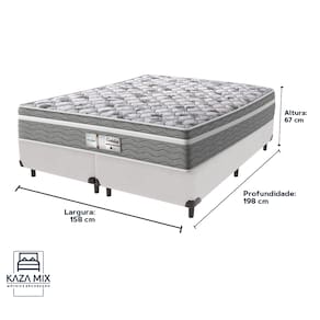 O conforto que sua casa precisa e a qualidade que você merece está na Kazamix!O Colchão Evolution é a escolha ideal para quem busca conforto, suporte e qualidade em cada noite de sono. Com Molas Ensacadas que oferecem um suporte individualizado, e um Pillow Euro que proporciona uma camada extra de suavidade, esse colchão transforma seu descanso em uma experiência de luxo.Com espuma D28 de alta densidade, o Evolution garante firmeza e conforto duradouros. Seu acabamento em poliéster diamante e bordado em matelassê trazem um toque de elegância e sofisticação ao seu ambiente.Além disso, o colchão é tratado com propriedades antiácaro e antialérgico, garantindo um sono mais saudável e seguro.Invista no seu bem-estar com o colchão Evolution, e experimente a combinação perfeita de conforto e durabilidade!Modelo: EvolutionMarca: ProbelTamanho: QueenDimensões: 158x198X32 (Largura x Comprimento x Altura)Conforto: IntermediárioSistema: Molas EnsacadasPillow: Euro PillowPeso Máximo recomendado: 110 kg (Por pessoa)Proteções: Antiácaro, antialérgico, antifungo, antimofoGarantia: 1 ano pelo FabricanteO conforto que sua casa precisa e a qualidade que você merece está na Kazamix!Eleve o conforto e a sofisticação do seu quarto com a Cama Box!Produzida em madeira de reflorestamento reforçada, a Cama Box combina qualidade, durabilidade e um design elegante, que confere leveza e modernidade ao seu dormitório. Sua estrutura robusta suporta até 150 kg por pessoa, garantindo a sustentação perfeita para o colchão e prolongando a vida útil do produto.Com uma altura ergonômica, ela oferece maior conforto ao deitar e levantar, enquanto o acabamento de alta qualidade se adapta a qualquer estilo de decoração, unindo praticidade e estilo.Não perca tempo! Adquira agora mesmo a sua Cama Box e transforme seu dormitório com conforto e elegância.Marca: KazaMixModelo: BoxCor do Box: BrancoTamanho: QueenDimensões: 158X198X35 (Largura x Comprimento x Altura) Estrutura: MadeiraPeso máximo recomendado: 150 kg (Por Pessoa)Altura do Box: 25 cm Altura dos Pés: 10 cm Altura total: 35 cm Garantia: 03 mesesSelo Ecologicamente CorretoAtenção: Antes de finalizar sua compra, certifique-se de que as dimensões do produto sejam adequadas para serem transportadas pelos elevadores, portas, escadas e corredores de sua residência. Ressaltamos que não nos responsabilizamos pelo transporte do produto por meios específicos, como escadas, guinchos ou içamentos.