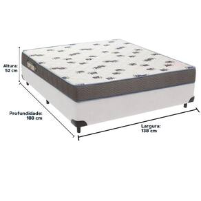 Marca: KazaMix Modelo: Box Cor do Box: Branco Tamanho: Casal Dimensões: 138X188X35 (Largura x Comprimento x Altura) Estrutura: Madeira Peso máximo recomendado: 150 kg (Por Pessoa) Altura do Box: 25 cm Altura dos Pés: 10 cm Altura total: 35 cm Garantia: 03 meses Selo Ecologicamente Correto