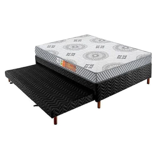 Cama Box Base c/ Auxiliar Casal Sommier Rústico Bordado Black (138x188x30) - Paropas