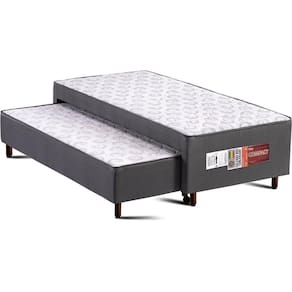 Cama Box c/Auxiliar Conjugado Solteiro: Colchão Ortopédico Compact Plus Grey (88x188x40) Polar