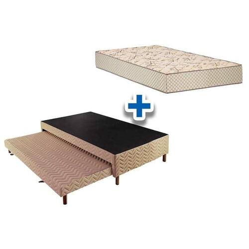 Cama Box C/auxiliar Solteiro: Colchão Espuma D33 Pérola Clean + Base Crc Rústico Clean(88x188)