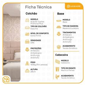 A base box é confeccionada com madeira de reflorestamento, tratamentos anticupim e antimofo. Seu revestimento de alta qualidade agrega valor e sofisticação ao quarto.