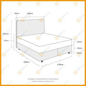 Especificações Técnicas Base Box: - Marca: Lucas Home; - Material: Madeira tratada; - Peso máximo recomendado: até 150Kg (por pessoa); - Altura da base: 25cm; - Altura dos pés: 10cm; - Revestimento: Corino; - Garantia: 06 meses na estrutura; - Dimensões do produto (largura x comprimento x altura) Queen: 158x198x35cm