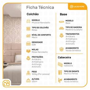 Complementando este colchão, a base box é feita de madeira tratada e revestida, suportando até 150 Kg por pessoa. Ela não só eleva seu colchão a uma altura ideal para fácil acesso, mas também estabiliza seu sono com uma fundação sólida e confiável. Esta combinação não apenas maximiza seu conforto, mas também a funcionalidade do seu espaço de descanso.